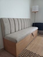 La banquette Coffre a été spécialement conçue pour les petits établissements cherchant à optimiser chaque espace tout en offrant un rangement pratique pour leur matériel. Tous les éléments de cette banquette sont personnalisables : dimensions, matériaux et couleurs.